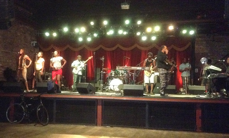 Throughout his 26-year career, Femi has toured with large rock and roll acts in the U.S., including Jane’s Addiction and The Red Hot Chili Peppers, and collaborated with Mos Def, Common and Jaguar Wright on a song for the video game “Grand Theft Auto IV (Ridgefield Press 2015).” As I interviewed Femi for the Music Historian in the lounge above the Brooklyn Bowl stage, minutes before his rehearsal, I asked him what it is about Afrobeat that artists from other genres admire.